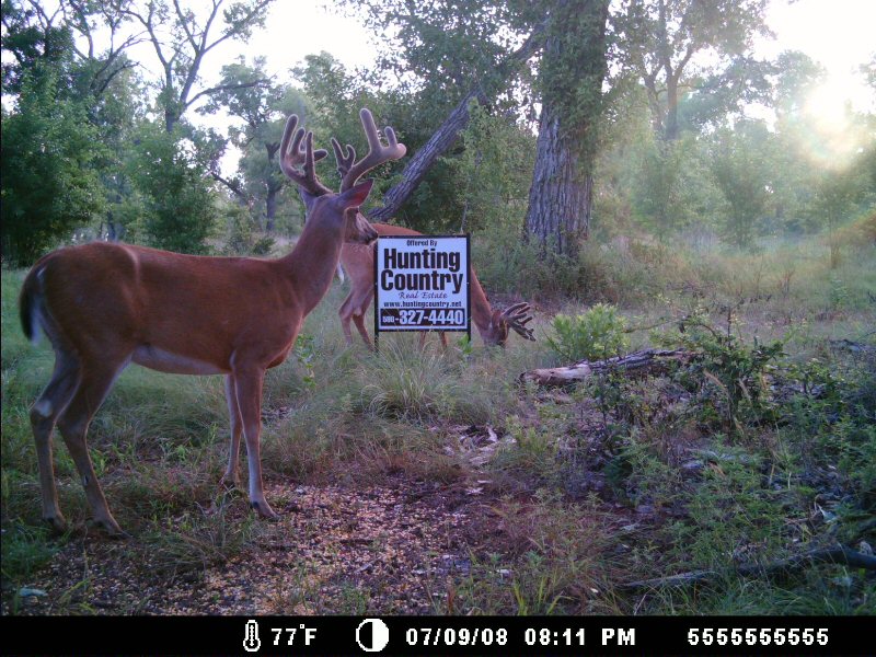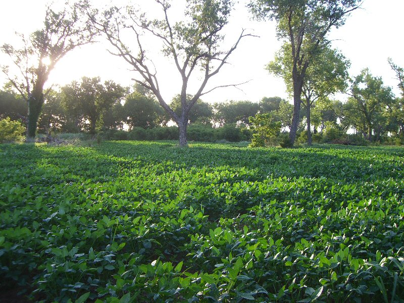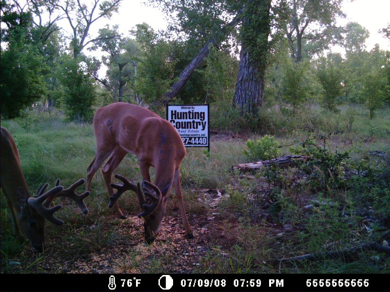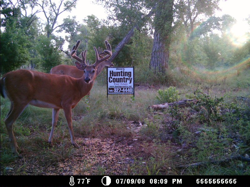 This 120 acre farm was purchased in the Spring of 2008 for $120,000.  Hunting Country is using this land as a project farm to show how easy and affordable it is to improve the quality of wildlife on the average land.  Within 10 to 12 weeks following the acquisition the results were already noticeable.  While the appearance may look like an “Extreme Makeover”, this project was pretty simple and affordable.  When purchased, the land was nothing special, and mostly covered in native grasses, weeds, and cactus, with small areas of trees along the outer boundaries of the land.  For the most part this was an average Northwest Oklahoma farm.  The Whitetail numbers were “average at best” on this tract.   The Salt Fork River to the south manages to breach the property in a couple places.  After disking under nearly 60 acres half was planted to milo and half to cowpeas.  12 ft. to 20 ft. wide strips were disked in the timbered area along the eastern boundary and planted to cowpeas as well.  To better insure the success of our food plots seed planting rates on the milo were reduced to below 5 lbs. per acre hoping to eliminate drought risk from our normally dry summers. The cowpeas are known for their tolerance to poor soil types and were planted at a rate of 25 lbs. per acre.  Surprisingly enough the cowpeas were the easiest crop I’ve ever tried to grow.  Our intentions are to disk under approximately half (15 acres) of the cowpeas in late August, then plant those areas to winter wheat.  We want to have a variety of crops with different growing seasons to provide adequate protein and forage throughout most of the year.  With rising fertilizer costs we hope to eliminate much of our expense by allowing the “disked-under” cowpeas to increase the organic matter in the soil and provide a nitrogen source for our winter wheat crop.  The soil is mostly sandy loam and is extremely susceptible to wind erosion if erosion control products are not used occasionally.  The cowpeas will also help to eliminate much of this issue by leaving more “trash” on the surface, rather than farming the ground “clean”.  From the photos you can see different stages of the project and how the crops mature.