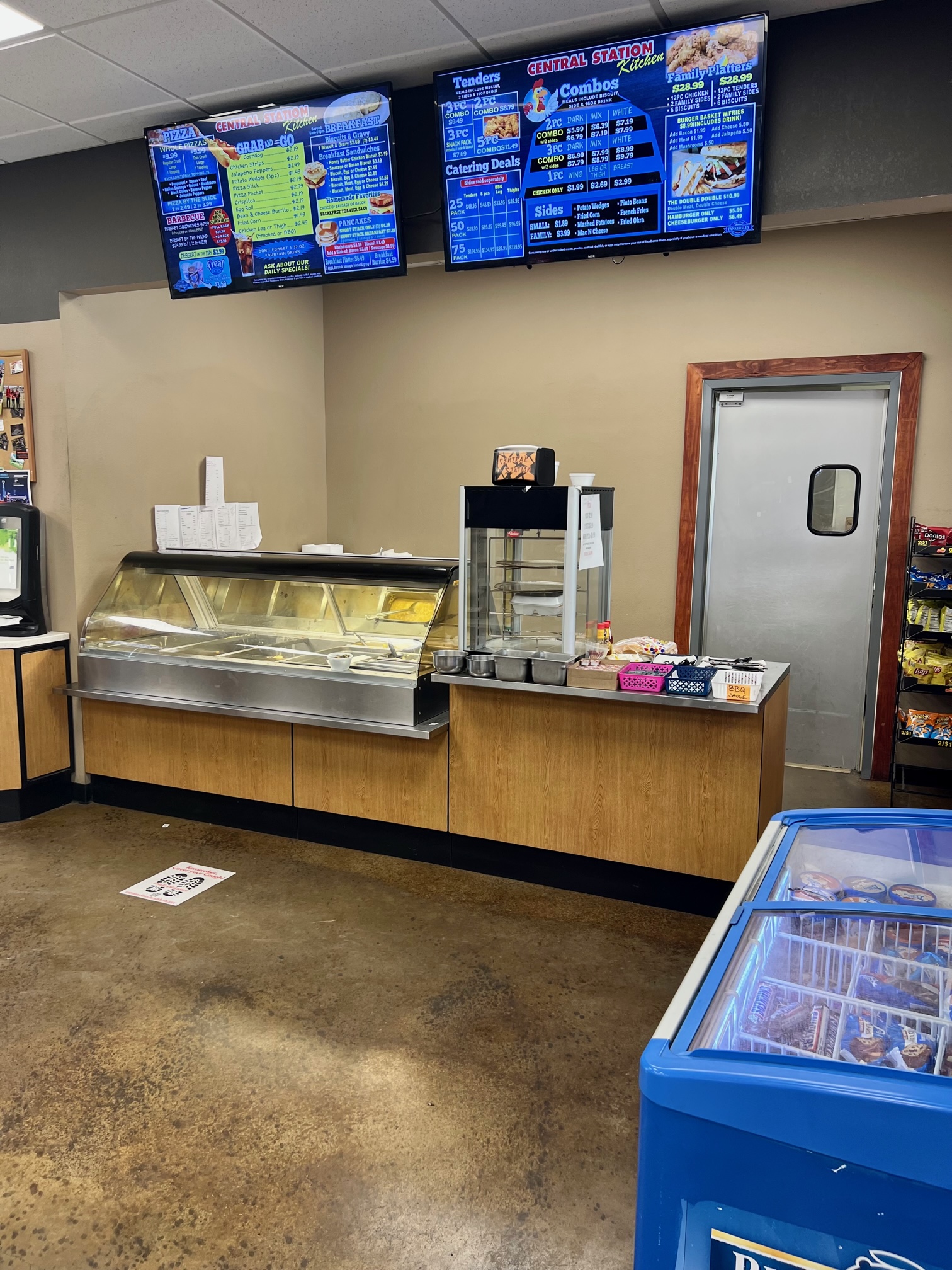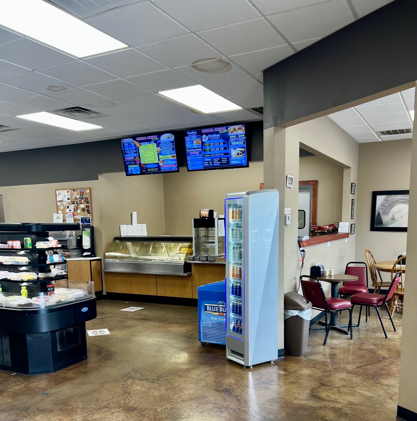 Located at 217 Central Avenue in Idabel, OK.  The store has two main entrances and is accessible from Hwy 70 or from Central Avenue. Central Station is next to the post office, across the street from the Courthouse and near many downtown businesses and has annual sales of $5.1 million dollars. It is approximately 50 miles from Paris, Texas and only about 35 miles from Hochatown. The building is approximately 4760 square feet of space featuring a deli with full kitchen, walk in cooler, walk in freezer, dining area and large retail space.