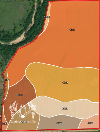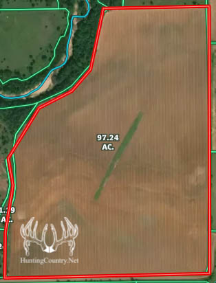 Proximity to Bluff Creek should allow opportunities for whitetail deer hunting. Whitetails from neighboring properties are known to use this property as a destination feed field, utilizing the excellent crops as their high protein food source.
