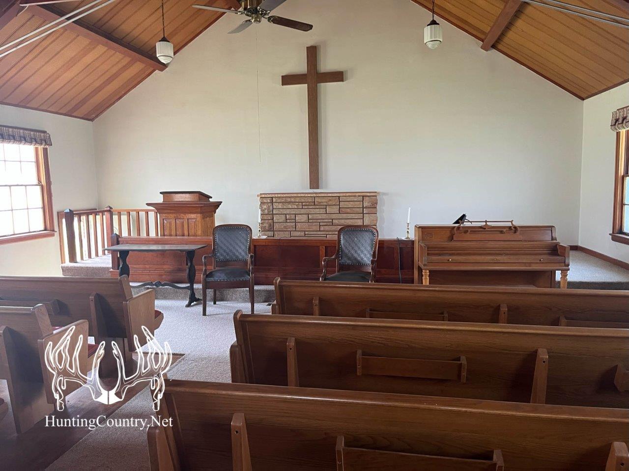 This quaint little country church and parsonage sits right on the line of Deer Management Unit 15 and 16 in south central Kansas. Anyone in the know understands this is some of the most sought-after deer hunting in the state of Kansas. A step back in time to a simpler life in a beautiful area. A thriving farming community, rich in good crops providing excellent habitat for deer and other wildlife, makes this a fantastic option for a home base hunting camp or anyone wanting to get out of the city. Not many of these jewels are left at such an affordable price. Here’s your chance to own a beautiful piece of history. There is so much character in the church with an open floor plan on the main level. The basement has an open floor plan with a kitchen and large fellowship area. The possibilities are endless with central heat and air, propane hot water heater, and a bathroom.