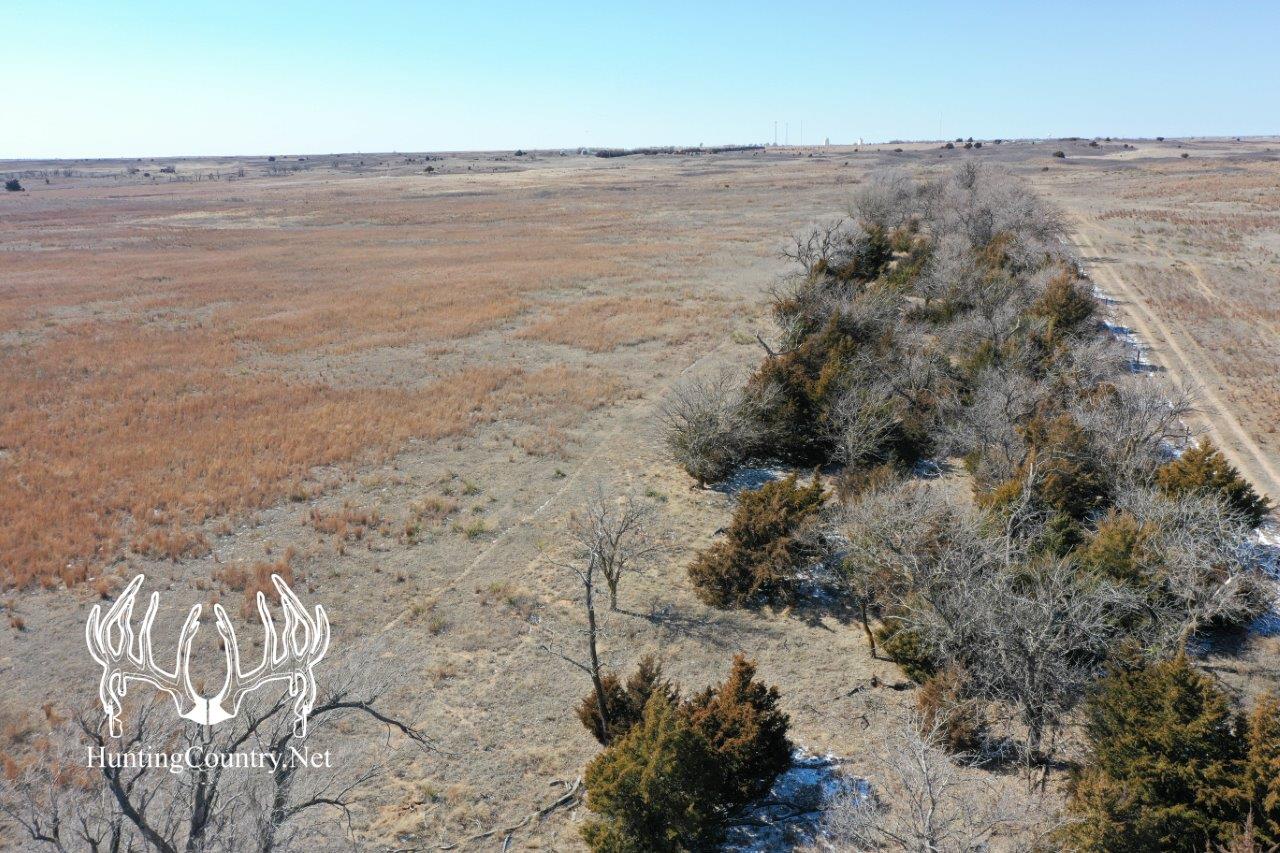 Located 2 miles east of Coldwater Kansas. The west branch of Nescatunga Creek runs through the center of this farm and supports a diverse population of game including Deer, Upland Game, Pheasant and Predators. A new 5-wire fence was just completed on the north property line. The majority of the farm is native grasses with rolling terrain. There is also a shelter belt of trees that runs ½ mile across the west half of the north property line. The stock tank, corals and water are all located by the homestead.