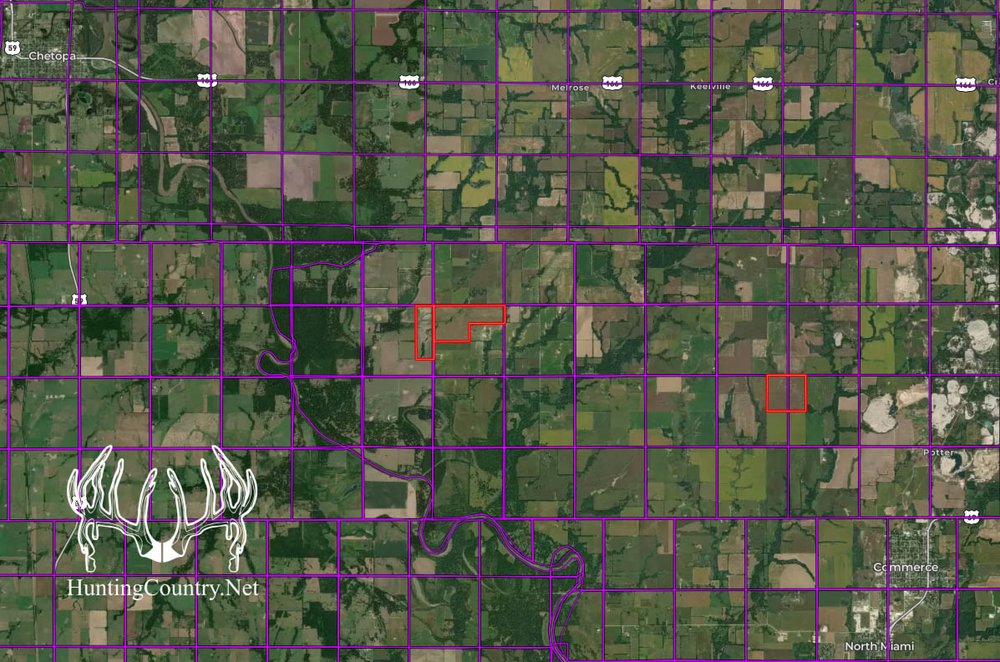 405 acres m/l. Ottawa County Oklahoma Cropland for Sale. These 2 farms are approximately 4 miles apart and are suitable for growing all crops customary to the area, including several different high yield crops such as Corn, Alfalfa, Wheat, Soybean and Milo. The farms are currently cash rented on a yearly basis. If you are looking for income producing crops or seeking to expand your farming operation, this land deserves your attention. Both properties offer wet water creaks. One of the farms includes a small pond and has already poured cement slabs for future grain storage. These two farms also offer habitat for Whitetail Deer Hunting, Upland Game and Waterfowl Hunting. Located within the central flyways for Waterfowl. The tracts are just 2 miles from the well-known Neosho River, and have mostly blacktop access. The Neosho River is well known for exceptional waterfowl and whitetail deer hunting. This area is also known for growing an abundance of Income Producing Pecan Trees.