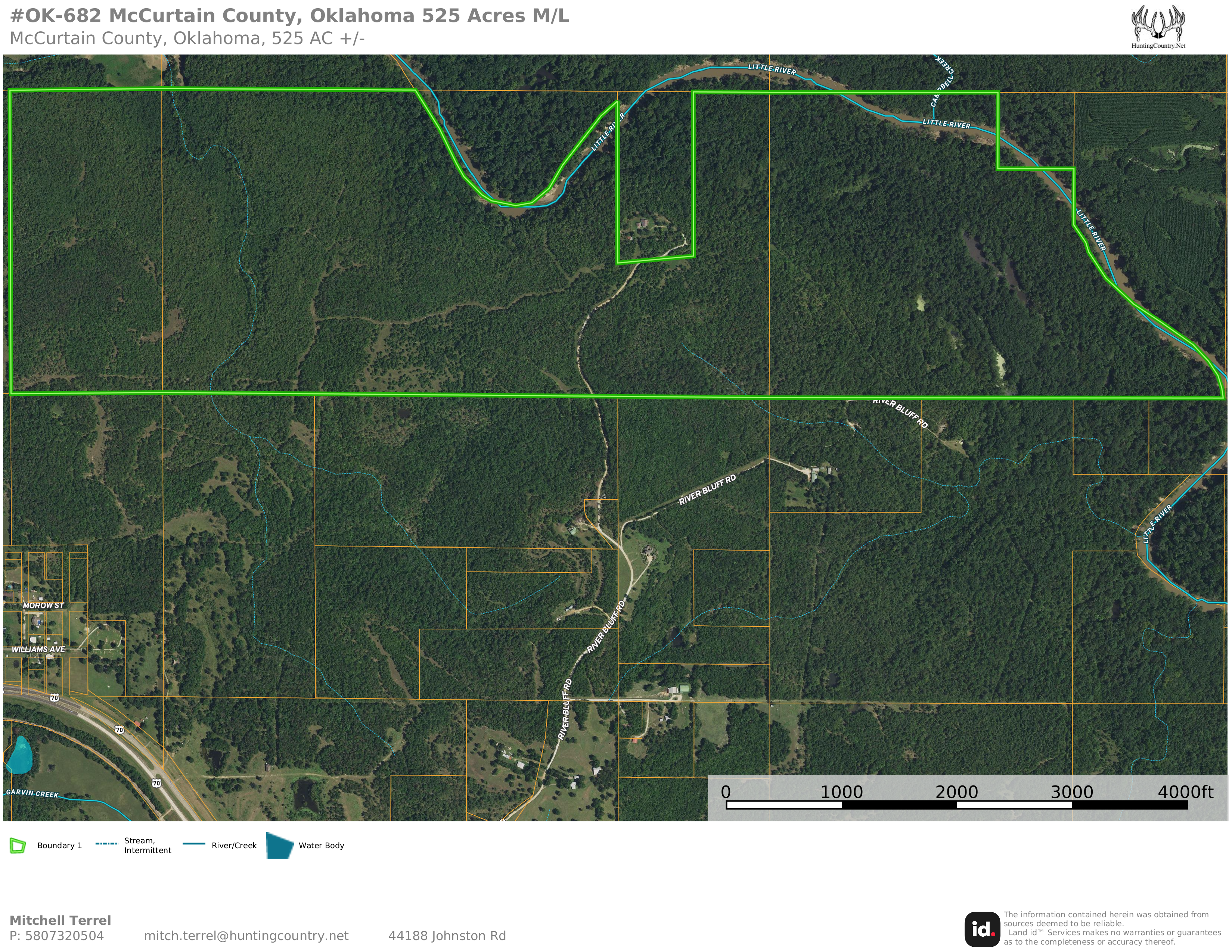 This 525 acre Sportsman’s Paradise is located on the south boarder of the LITTLE RIVER and offers development potential. HUNTING & FISHING conveniently located North of Garvin and Highway 70 on River Bluff Road. Call today for more information!