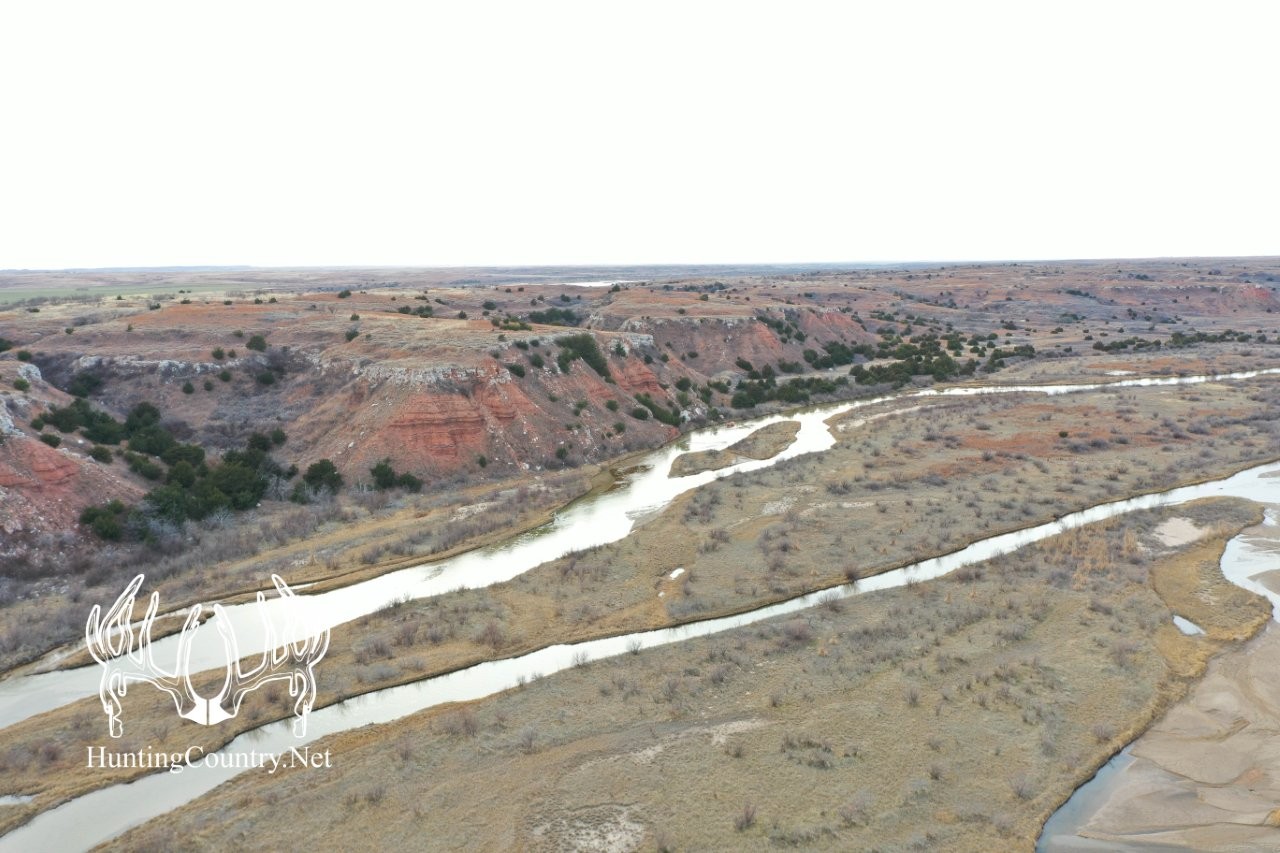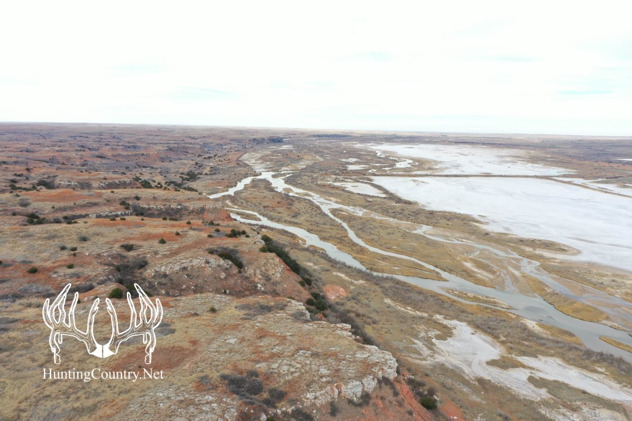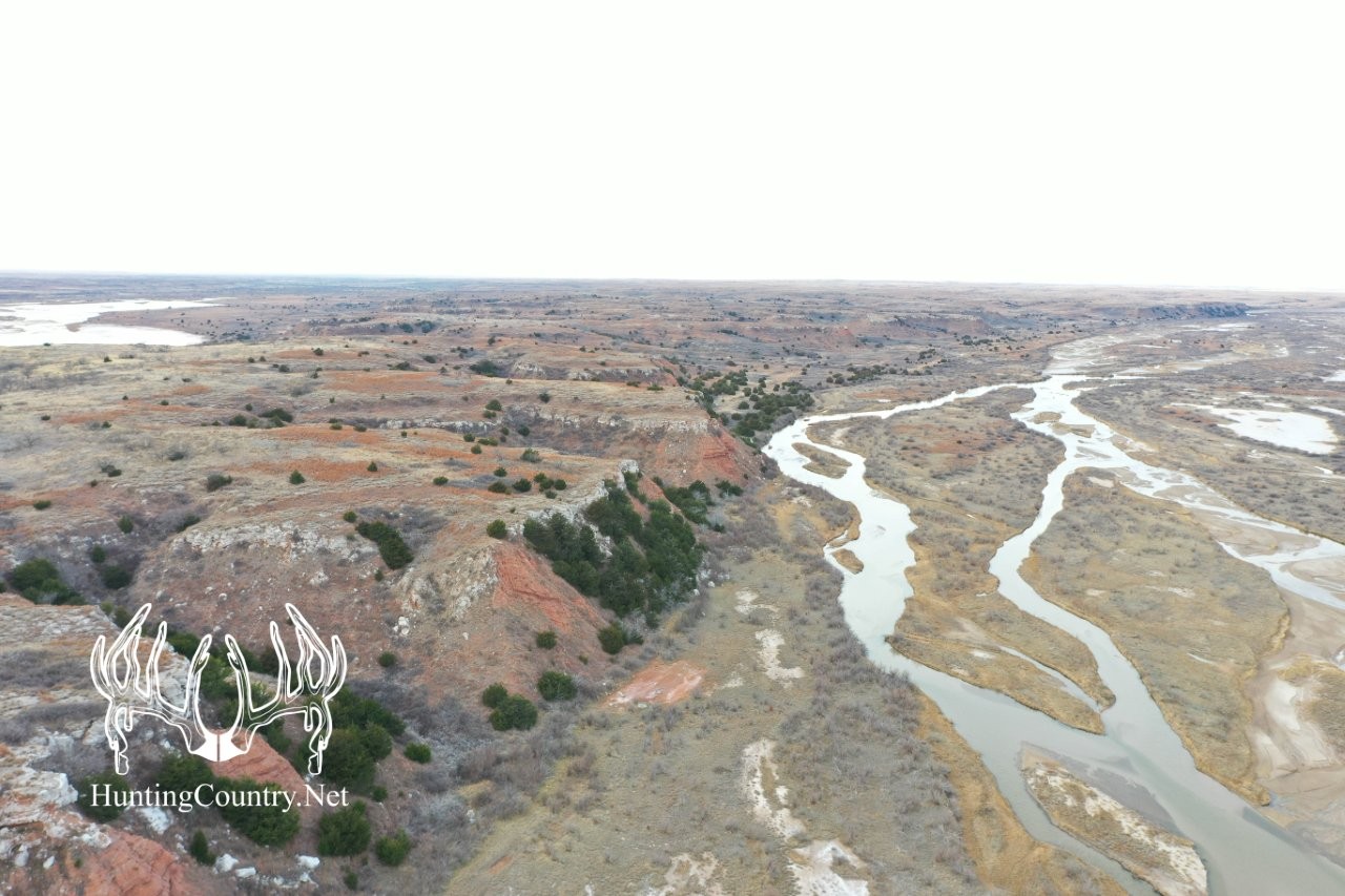 This secluded hunting property rests on the South side of the Cimarron River with the majority of it consisting of a large plateau with rolling cedar and thicket lined canyons around the base. Property is located South of the Cargill Salt Plant west of Freedom, Oklahoma. The habitat lends itself to supporting a diverse population of game. The quality and age structure of deer in this area is noticeably better than most areas of northwest Oklahoma.